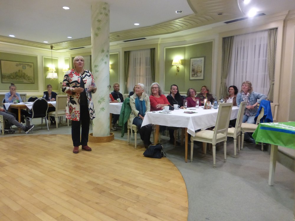 Die Abendveranstaltung im Gasthof Falter leitete Jens Schlüter ein. Er sagte, Claudia Roth verkörpere für ihn vieles, wofür die Grünen sich seit ihrer Gründung einsetzen, etwa den Schutz der Lebensgrundlagen und die Gleichberechtigung. Lebensnah und mit aktuellen Beispielen unterfüttert war dann Claudia Roths Rede. Scharf kritisierte sie „Arroganz und Ignoranz“ des Energiekonzerns RWE im Hambacher Forst; der Ausstieg aus den fossilen Brennstoffen sei überfällig, „die Kohle verstopft den Weg zu den erneuerbaren Energien.“ Erfreulich sei, dass mit Denis Mukwege und Nadia Murad zwei Menschen den Friedensnobelpreis 2018 erhalten haben, die sich gegen sexuelle Gewalt – vor allem als Waffe im Krieg – engagieren. Dass dem türkischen Staatspräsidenten Erdogan bei seinem Besuch in Berlin der rote Teppich ausgerollt worden ist, verstehe sie ebenso wenig wie die Tatsache, dass Deutschland Rüstungsgüter an den despotischen Staatschef liefert. Demokratiefeinde gebe es aber auch in Deutschland, warnte die Politikerin und bat das Publikum: „Gehen Sie zur Wahl und wählen Sie eine demokratische Partei! Das Wahlrecht ist das Grundnahrungsmittel der Demokratie!“
