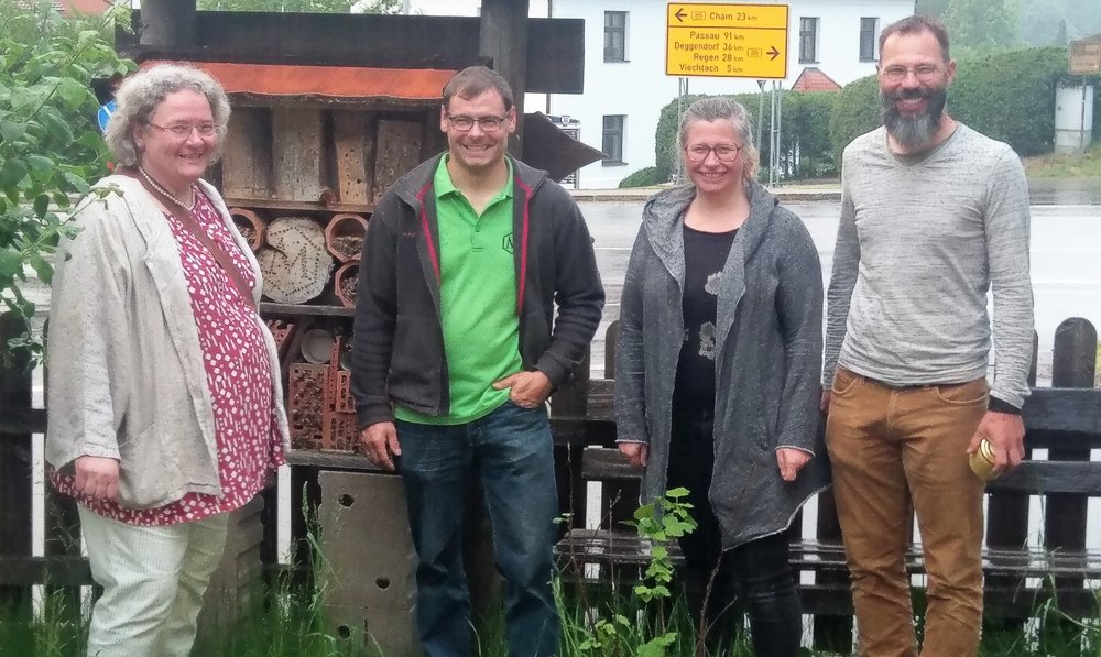 Anlässlich des Weltbienentags besuchte eine Delegation der Kreisgrünen die Bio-Imkerei Muhr in Prackenbach. Vor Ort erhielten Bezirkstagskandidatin Susanne Keilhauer, Kreisvorsitzender Gerd Winklbauer sowie Kreiskassiererin Laura Amberger und der Zwieseler Stadtrat Martin Lippl einen Einblick in die Arbeitsabläufe bei der Honiggewinnung. Imkermeister Josef Muhr erläuterte, dass sein Betrieb zurzeit etwa 350 Bienenvölker für die Honigproduktion umfasst. Aufgrund der immer früheren Mähzeitpunkte finden seine Tiere nun in heimischen Regionen wenig Nektar. Aus diesem Grund sowie zur Gewinnung von sortenreinem Honig, müssen die Bienenvölker an weitere Standorte in ganz Deutschland transportiert werden. Große Monokulturen im Anbau sieht Muhr als ein großes Problem für seinen Betrieb. Sowohl der Imkermeister als auch seine Besucher erachten artenreiche Wiesenstreifen neben Äckern, die sehr wenig gemäht werden, als sinnvolle Maßnahme, um diesem Problem entgegenzuwirken.