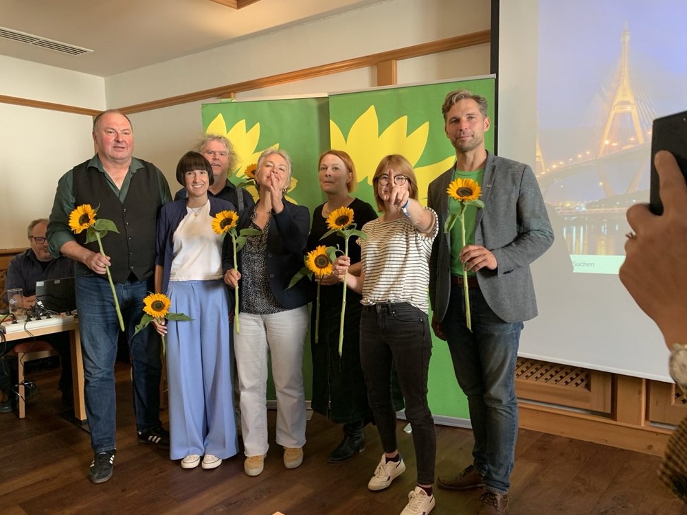 Ebenfalls auf der Bezirksversammlung waren (v.li.) MdB Erhard Grundl, die beiden Bezirksräte Steffi Auer und Markus Scheuermann, Landesvorsitzende Gisela Sengl, MdL Mia Goller, MdB Marlene Schönberger, MdL Toni Schuberl.