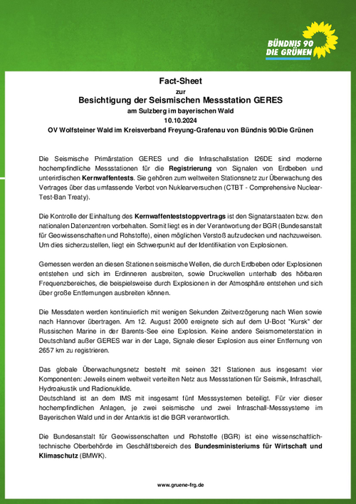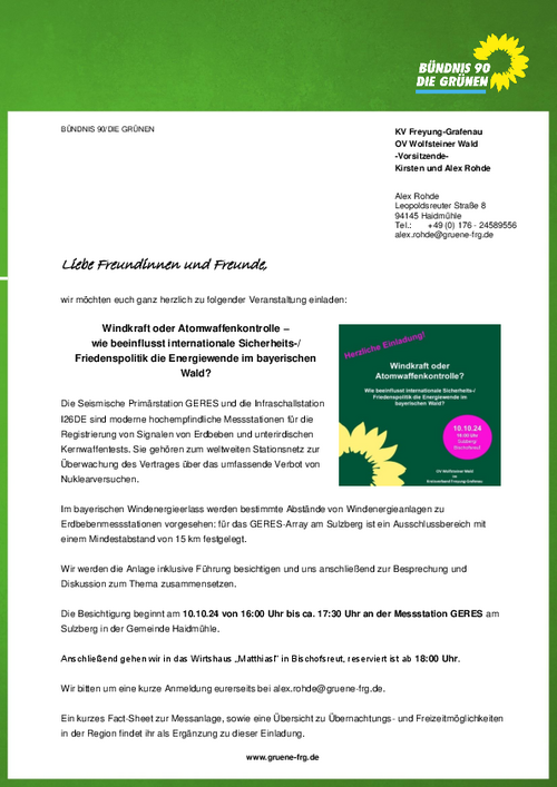 Die Besichtigung ist am 10.10.24 von 16:00 Uhr bis ca. 17:30 Uhr an der Messstation GERES am Sulzberg in der Gemeinde Haidmühle.