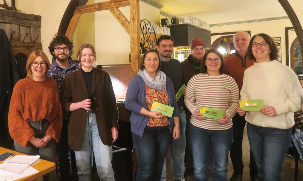 Mit voller Konzentration machten sich die elf Dreier-Teams an die Beantwortung der Quiz-Fragen. Neben geografisch lokalisierbaren Teams wie "Schlatzendorf", "Hinkhof" und "Oberried" kämpften die "Freiheits-Ultras", die "Kaff-Gruftis", "Zurück in die Zukunft", "Feuerstein", "Ich will nicht nach Berlin", "Super 99", "Grün hinter den Ohren" und "Freiheit für Grönland" um den Sieg. Es gab leichtere bis sehr knifflige Fragen zu Frauenrechten, Sozialthemen, zu Aufgaben von Kommunen sowie zu Demokratie und Vielfalt.