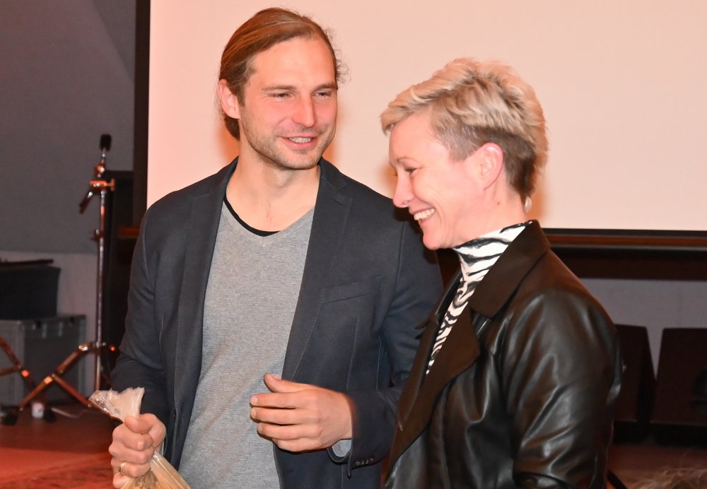 Nicole Herzog bedankte sich bei Jugendcafé-Leiter Christian Schwarz und den ca. 25 Zuhörern. Speziell dankte sie dem Abgeordneten für seine engagierte Arbeit und überreichte ihm in Anspielung auf seinen Vornamen ein Ton-I, also einen Quader aus Töpfer-Ton – „damit du dir die Welt so formen kannst, wie du sie gerne haben möchtest“.