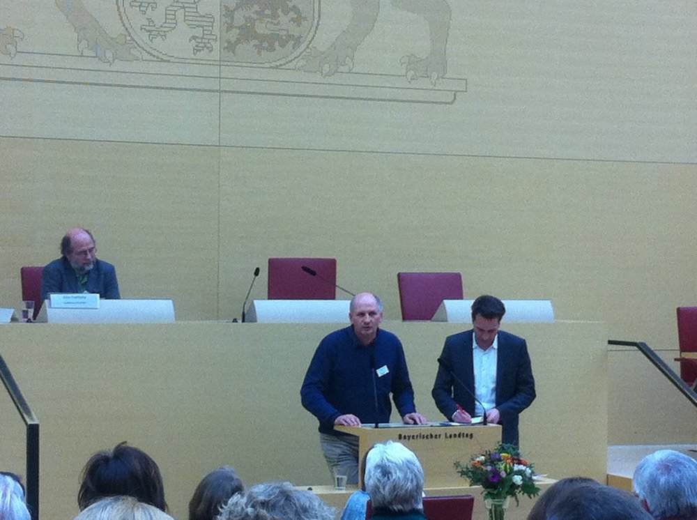 Bereits am 14. März folgte unser Mitglied Michael Vogl einer Einladung unseres Landesverbands nach München. Er nahm am traditionellen Kennenlerntreffen für neue Mitglieder unserer Partei teil. Dabei hatte er die Möglichkeit mit einigen Landtagsabgeordneten zu verschiedenen Themen zu diskutieren. Im Sitzungssaal des Maximilianeums nutzte er die Gelegenheit, sich zu Wort zu melden. Am Rednerpult appellierte er an die anwesenden Fraktionsmitglieder und neuen Grünen, sich weiterhin und verstärkt für die erneuerbaren Energien und insbesondere gegen die 10H-Regelung bei Windrädern einzusetzen.