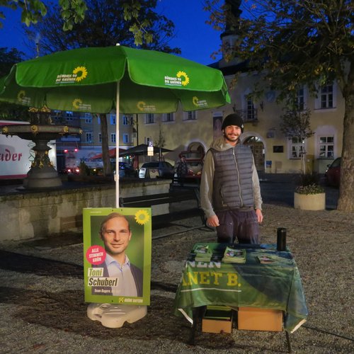 Am Wahlinfostand auf dem Viechtacher Wochenmarkt stand Moritz Gierl letzten Mittwoch schon früh um 6 Uhr. Da er um 8 Uhr zu Arbeit musste, führte er am Stadtplatz Gespräche mit Frühaufstehern.