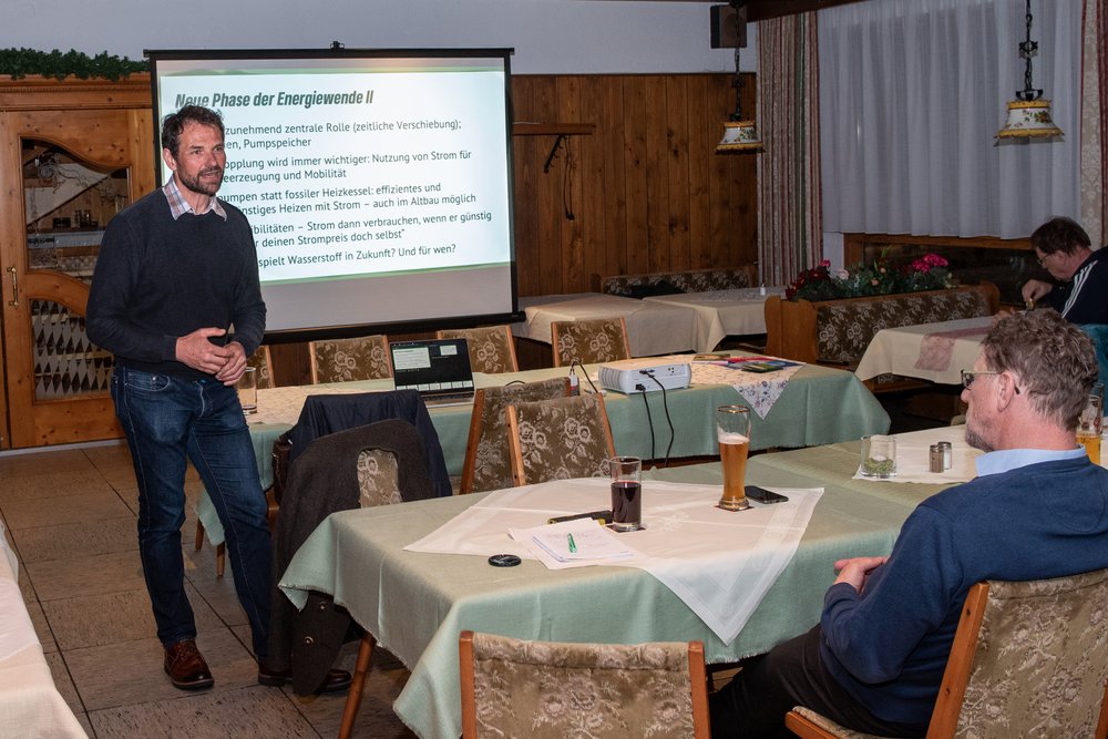 Martin Stümpfig, Landtagsabgeordneter der Grünen und energiepolitischer Sprecher seiner Fraktion, hielt vor 30 Zuschauern einen Vortrag im Hotel Kapfhammer. Veranstalter waren die Kreisräte Martin Lippl, Egid Werner und Christian Zeitlhöfler, die seit einiger Zeit hochkarätige Referenten zum Thema Energie in den Landkreis holen . Stümpfigs Schwerpunkt lag auf der Wärmeversorgung der Zukunft.Sowohl Kreisrat Martin Lippl als auch Landtagsabgeordneter Stümpfig stellten zu Beginn die Frage: „Warum machen wir das überhaupt?“ In der aktuellen Diskussionen vergessen wir laut Lippl oft, dass wir die Energiewende nicht zum Spaß machen. Artenschwund, Hitzerekorde, Dürren, Missernten, Waldbrände, Überschwemmungen, sinkende Wasserpegel und steigender Meeresspiegel sind Auswirkungen des Klimawandels und in der Folge steigende Preise, Klimaflüchtlinge, internationale Konflikte. Und wir stehen erst am Beginn der Veränderungen. Die Wissenschaft warnt Jahr für Jahr vor dramatischen Entwicklungen in der Zukunft.Warum kommen wir in eine neue Phase der Energiewende? Stümpfig führte aus, dass es bisher vorrangig um den Zubau an Erzeugungsanlagen, vor allem PV und Wind ging. Nun werden Speicherung, der in Bayern verschlafene Netzausbau, die zeitliche Verschiebung des Verbrauchs, eine Flexibilisierung und die Sektorankopplung neben der Steigerung der Effizienz und Einsparung immer wichtiger. Nur so können weitere PV-Anlagen sinnvoll integriert und die Abregulierung der Anlagen wieder deutlich reduziert werden. In Zwiesel haben wir noch viel Luft nach oben in Sachen PV. Wir brauchen aber auch hier die Windkraft, im Landkreis steht kein einziges Windrad. Sie muss in Deutschland in der Fläche gleichmäßig verteilt sein, um den Netzausbau in Grenzen zu halten.