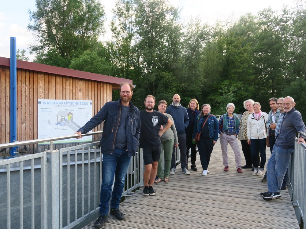Das Wasserkraftwerk im Kurpark Regen hat der Grünen-Kreisverband Regen zum Treffpunkt für die Juli-Monatsversammlung gewählt. Den Umweltingenieur Christoph Pfeffer hatten die Teilnehmer eingeladen, um sich über naturschonende Stromerzeugung aus Wasser informieren zu lassen. Pfeffer ist ein leidenschaftlicher Befürworter von Kleinwasserkraftanlagen. Deren Förderung von Seiten der Bundespolitik stand vorübergehend zur Diskussion, wird aber nun im Rahmen des massiven Ausbaues regenerativer Energien weiter gewährt. Die Anlagen haben allerdings bei Naturschützern oft keinen guten Ruf; diese befürchten eine Beeinträchtigung des Ökosystems und der Fischpopulationen. Pfeffer räumte den Konflikt „Energie gegen Ökologie“ ein; dieser werde aber bei der innovativen Hydroenergiegewinnung entschärft, da die Technik sich enorm verbessert hat: „Wir wissen viel mehr als vor hundert Jahren!“ Nun seien sowohl die bayerische Regierung als auch der Bezirk in der Pflicht, Verwaltungsabläufe anzupassen und Genehmigungsprozesse zu beschleunigen: „Wir brauchen Lösungen statt Verhinderungen!“ Am Beispiel der Wasserkraftschnecke im Kurpark erläuterte er die sanftere Art der Energiegewinnung: „Die Schnecke dreht sich langsamer als eine konventionelle Turbine und ist darum wenig gefährlich für Fische.“ Für den Tierschutz sorge auch ein integrierter moderner Fisch-Pass. Pfeffer forderte von der Politik einen „Innovations-Kick“, man solle nicht den Stillstand verwalten, sondern auf den Stand der Technik „noch was drauflegen“. Vor allem die Anbindung von Zulaufbächen sei wichtig, zu viele seien verrohrt. 80 % des Haushalts-Strombedarfs im Landkreis Regen seien durch Hydroenergie gedeckt. Diese sei weniger volatil als andere erneuerbare Energiequellen und darum „das Notstromaggregat der Bevölkerung“. Die dezentrale Stromerzeugung durch „Energieinseln“ sei zukunftsweisend. Auf die Frage nach den Auswirkungen von weniger Niederschlag erläuterte Pfeffer, es gebe heute mehr extreme „Spitzen“, wohingegen die früher konstante Flüssigkeitszufuhr durch die Schneeschmelze inzwischen entfalle sowie die allgemein steigende Temperatur mehr Verdunstung verursache. „Die Anlagen kann man aber anpassen!“ Das gelte sowohl für Starkregenereignisse als auch für Trockenphasen. Kreisrat Egid Werner plädierte für eine Neuüberplanung des Energienutzungsplans bezüglich der Wasserkraft. Christoph Pfeffer meinte, an geeigneten Stellen sollten sogar neue Kleinkraftwerke erlaubt und im Gegenzug ineffiziente abgebaut werden. Zum Schluss des informativen Ortstermins wurden noch einige Szenarien durchgespielt wie z.B. Pumpspeichertechnik oder PV-Flächen auf Wasser. Einig waren sich die Grünen mit Christoph Pfeffer, dass angesichts des dramatischen Klimawandels die Wasserkraft als „ureigene Energiequelle“ genutzt und optimiert werden soll.